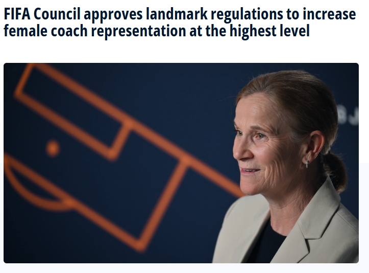国际足联理事会今日通过具有里程碑意义的新规,将重塑女子足球未来格局,要求所有旗下女子赛事参赛队的教练组必须包含女性成员。